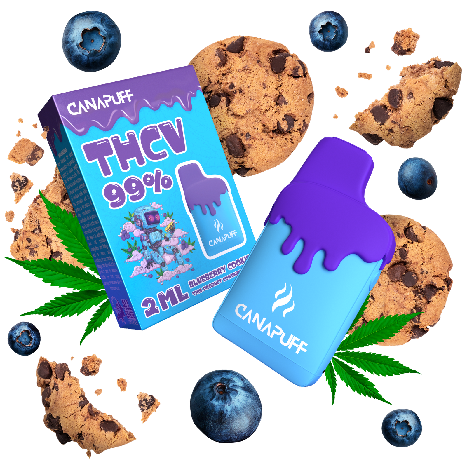 Ontdek de unieke ervaring van Blueberry Cookies 99% THCv van Canapuff, een premium vape die je niet wilt missen! Deze 2ml vape biedt een heerlijke, fruitige smaak van sappige bosbessen, perfect voor een moment van ontspanning en welzijn.